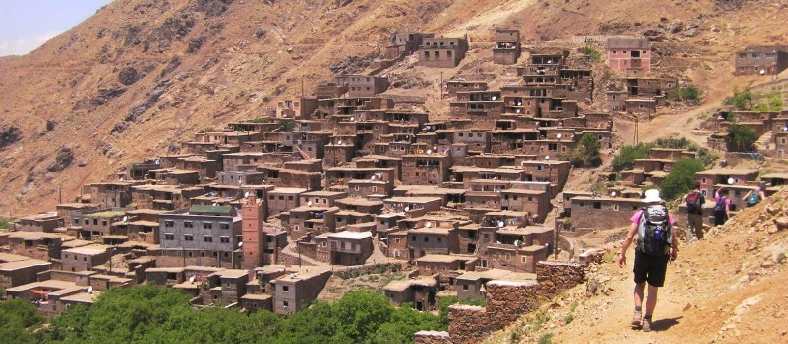 • Morning Trek: After breakfast, start your hike towards the Azzaden Valley, passing walnut groves and mountain scenery with views of Toubkal Peak in the distance.